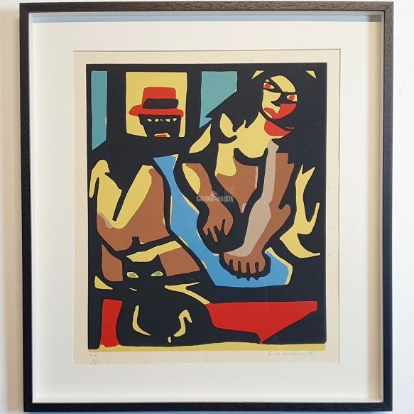 DI CAVALCANTI "Mulher e Gato" Serigrafia S/ Papel -Med 66x48 cm (Obra) 67x60 cm (Mold) -Assinado à lápis no CID -Exemplar HC-V/XX -Moldura nova em madeira "tipo caixa", passepartout e vidro de proteção.