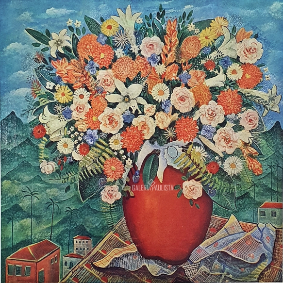 GUIGNARD "Vaso de Flores" Print-RotoGravura Colorida S/ Papel -Med 32x48 cm (Obra/Papel) 31x31 (MI) -Moldura em madeira, paspartur, vidro de proteção e foamboard anti-mofo no verso. Assinada e Dat 1932 no Centro Inferior-Assinat. impressa -Obra/Prancha No. 3 extraída do Álbum "Guignard" editada pela EDIART em 1967, com textos de Rodrigo M.F. de Andrade. Medida Total com a Moldura: 51x51 cm. Estado de conservação: Ótimo.