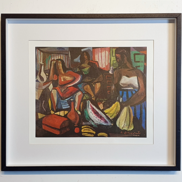 DI CAVALCANTI "Mulheres Sentadas" RotoGravura Colorida S/ Papel -Med: 38x51 cm (Obra-ME) 49x56 cm (Mold). Assinat Imp no CID na "chapa" -Obra/Prancha nº 03 extraída do Álbum "Grandes Pintores Brasileiros" por Petite Galerie, editada pela Editora Fontana e Livraria Cultura em Nov/1975. Com nova moldura em madeira "tipo caixa", com passpartout, vidro de proteção, e foamboard anti-mofo no verso. Estado de conservação: Ótimo. Med 28,5x35,5 cm (MI)