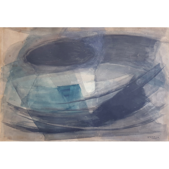 SAMSON FLEXOR "Sem Titulo" Tecnica Mista S/ Papel -Med 47x32 cm (Obra) 55x70 cm (Mold) -Assin e Dat 60 no CIE -Moldura em madeira de epoca, paspatur em madeira e vidro de proteção.