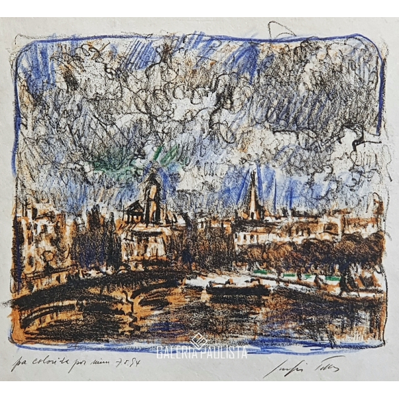 SERGIO TELLES "Paris" Lito e Aquarela S/ Papel Algodão- Aquarelada e Assinado pelo próprio artista -Data: 07-05-94 -Med: 21,5x25,5 cm (obra) Medida Total com a moldura: 32x36 cm. Moldura em madeira e colagem flutuante com vidro de proteção. Estado de conservação: ótimo.