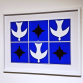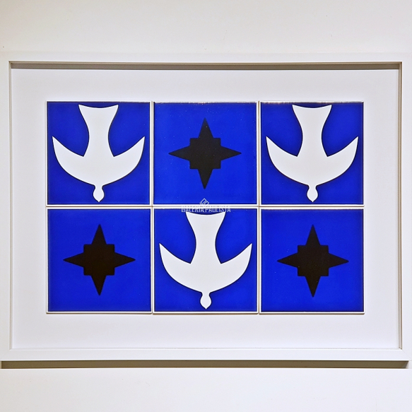 ATHOS BULCAO "Igrejinha N. Senhora de Fatima-1957" Painel de Azulejos -Meds: 31x46 cm (MI) e 45x60 cm (ME-Moldura) -Cachet/Carimbo da Fundacao Athos Bulcão no Verso. Painel composto por 06 azulejos de 15x15cm cada e moldura em madeira "tipo caixa" e vidro de proteção. Azulejos reproduzidos pela Fundação Athos Bulcão conforme obra original do painel em azulejos de autoria do artista. Estado de conservação: ótimo.