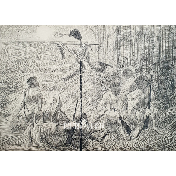 CANDIDO PORTINARI "Espantalho - 1954-57" RotoGravura S/ Papel Westerpost, Emoldurada -Med: 36x54 cm (Obra-ME) -Assinado e Dat 54 impresso no CID na "chapa" -Obra/Prancha extraída Álbum/Exemplar nº 829 "Mestres do Desenho" por Carlos Drumond de Andrade, editado pela Cutrix -Data: Déc 60 -Com nova moldura, vidro de proteção e foamboard anti-mofo no verso. Estado de conservação: Ótimo.