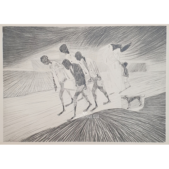 CANDIDO PORTINARI "S/ Título" RotoGravura S/ Papel Westerpost, Emoldurada -Med: 36x54 cm (Obra-ME) -Assinat impr. no CIE na "chapa" -Obra/Prancha extraída Álbum/Exemplar nº 829 "Mestres do Desenho" por Carlos Drumond de Andrade, editado pela Cutrix -Data: Déc 60 -Com nova moldura, vidro de proteção e foamboard anti-mofo no verso. Estado de conservação: Ótimo.