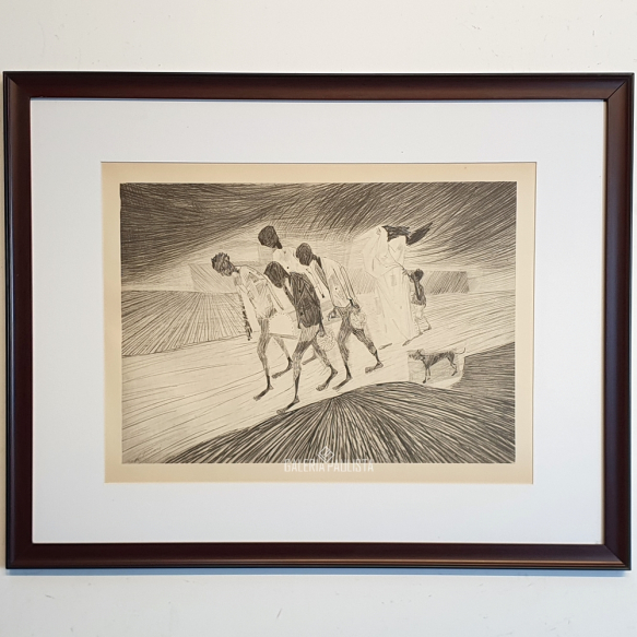 CANDIDO PORTINARI "S/ Título" RotoGravura S/ Papel Westerpost, Emoldurada -Med: 36x54 cm (Obra-ME) 53x66 cm (Moldura) -Assinat impr. no CIE na "chapa" -Obra/Prancha extraída Álbum/Exemplar nº 829 "Mestres do Desenho" por Carlos Drumond de Andrade, editado pela Cutrix -Data: Déc 60 -Com nova moldura, passpartur, vidro de proteção e foamboard anti-mofo no verso. Estado de conservação: Ótimo.