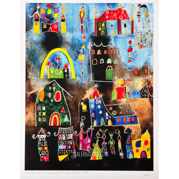 ANDREA MENDES "Homenagem a Hundertwasser - Série Hieróglifos" Giclée em Papel Algodão 308 grs -Med 33x25 cm (Obra) 40x30 cm (ME) -Data 2018 -Tiragem P/A -Com Intervesão manual da artista -Com moldura tipo caixa e vidro de proteção -Datada, assinada e numer no CIE e com assinat manual da artista em marca d’água no CID. Acompanha certificado de autenticidade assinado pela artista e pela impressora. SOBRE A ARTISTA ANDREA MENDES: Andrea Mendes é brasileira, nascida em Anápolis - Goiás em 1976. É pintora e fotógrafa e vive em São Paulo. Teve uma galeria de Arte em Brasília, a Andrea Mendes Galeria de Arte, em sociedade com Aurélio Flôres entre 2008 e 2010. Começou no universo da arte atuando como fotógrafa, de tanto escutar que suas fotos pareciam pinturas foi estudar aquarela e hoje se dedica a um trabalho autoral em pintura, se utilizando de várias técnicas, entre elas aquarela, guache, óleo e tinta acrílica, sobre papel e sobre tela.Em 2019 começou a fazer arte urbana, está se especializando na técnica e a cidade de São Paulo já conta com vários muros pintados pela artista. Realizou exposições individuais e coletivas em museus, centros culturais e galerias de arte no Brasil, Holanda, Alemanha, EUA, Portugal e Argentina. Tem trabalhos em coleções públicas e privadas no Brasil, Inglaterra, Holanda, Alemanha, Polônia, França, Portugal, Sri Lanka, EUA e Argentina. Prêmios e Bienais: Foi Selecionada com duas obras para a Bienal Naifs do Brasil - SESC - 2020 Recebeu Menção honrosa no concurso Hasselblad Masters 2008 Finalista no Prêmio SESC Marc Ferrez de Fotografia 2007 Exposições Individuais: Série Casa Vazia - Museu MACRO de rosário - Argentina - Exposição integrante do Festival Internacional de Fotografia - Encuentros Abiertos -Agosto / 2010 Série Re-flexos, luz e sombras - Fotografia e Psicanálise - Centro Cultural Correios - RJ Abril / 2007 Série Retratos de uma luta - Andrea Mendes e Grupo Teatral Pirei na Cenna - Teatro do Oprimido - Galeria Abraço - Lisboa - Portugal -Fevereiro / 2010 Série Re-flexos, luz e sombras - Fotografia e Psicanálise - ECCO - Espaço Cultural Contemporâneo - Brasília - Exposição integrante do FOTO ARTE 2007 e do Festival of Ligh - Brasília - DF - outubro / 2007 Série Re-flexos, luz e sombras - Fotografia e Psicanálise - Galeria da Aliança Francesa de Salvador - BA - Festival A Gosto da Fotografia - BA - agosto / 2007 Série Re-flexos, luz e sombras - Blow Up Gallery - Amsterdam - fevereiro/março/abril / 2007.