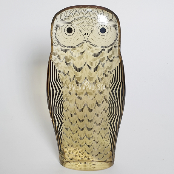 PALATNIK "CORUJA" Escultura-Arte Cinética -Med: 23 x 11 cm -Assinada "Pal" -Escultura produzida em resina de poliéster com filme colorido "preto e bege" na sua parte interna. Excelente estado de conservação, sem lascados ou bicados. Manufatura: Abraham Palatnik.