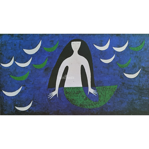 ALFREDO VOLPI "Sereia" Serigrafia Offset Colorida S/ Papel. Med: 38x51 cm (Obra-ME) 41x58 cm (Mold). Obra/Prancha nº 12 extraída do Álbum "Grandes Pintores Brasileiros" por Petite Galerie, editada pela Editora Fontana e Livraria Cultura em Nov/1975. Com nova moldura em madeira "tipo caixa", com passpartout, vidro de proteção, e foamboard anti-mofo no verso. Sem Assinatura. Estado de conservação: Ótimo. Medida da Imagem 21x38 cm (M.I.).