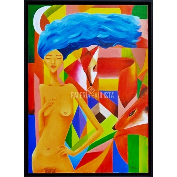 GIO ADRIANA "Coração Selvagem" Óleo Sobre Tela -Med: 70x50 cm (obra) -Data: 2017. Assinado no CID. Com Certificado da Artista. Esta obra participou de várias exposições no Brasil e na Itália. Estado de conservação: Ótimo. Com moldura na cor preta tipo baguete. Sobre a Artista: Gio Adriana, artista visual, paulista nascida em 1977, iniciou seu percurso artístico em São Paulo e atualmente vive e trabalha em Bolonha, Itália. Através de um trabalho multidisciplinar, articula idéias sobre cultura, construção de identidade, questões afetivas, arquétipos e sexualidade em uma atmosfera onírica que firma-se como uma linguagem própria. Uma construção que não se limita à representação da figura feminina, mas inclui formas e conceitos mais amplos, bem como diferentes técnicas como pintura, ilustração, colagem e fotografia. Seu processo criativo está centrado no corpo feminino como território de construção de uma narrativa visual que busca a liberação da carga negativa usualmente vinculada e propõe uma visão poética livre.