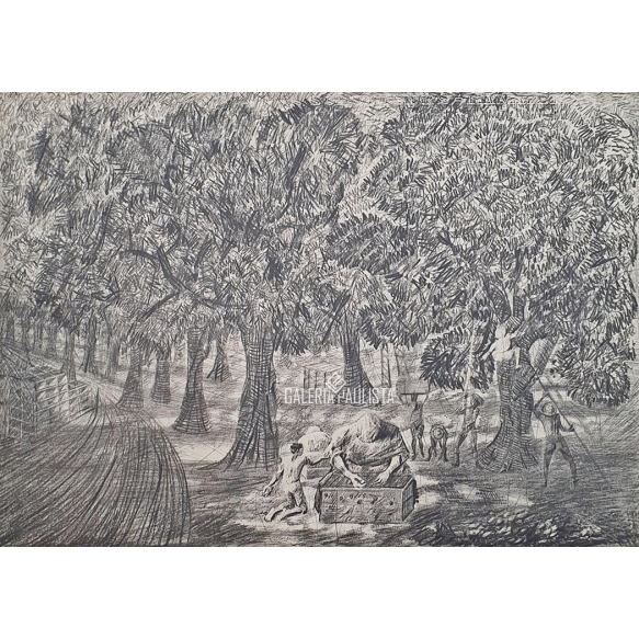 CANDIDO PORTINARI "Colheita" RotoGravura S/ Papel Westerpost -Med: 51x33 cm (Obra-ME) -Obra/Prancha extraída Álbum/Exemplar nº 0829 "Mestres do Desenho" por Carlos Drumond de Andrade, editado pela Cutrix -Data: Déc 60 -Sem Moldura (nunca emoldurado). Estado de conservação: Ótimo.