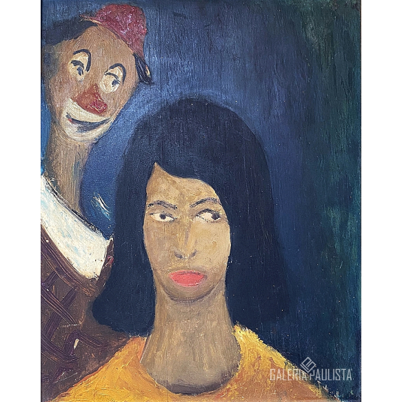 SÉRGIO MILLIET (1898-1966) "Mulher e Palhaço" Óleo Sobre Madeira -Med 30 x 23 cm (obra) -Assinado no "SM" no CSD -Medida total com a moldura: 33 x 26,5 cm. Apresenta Cachet no Verso da CASA MENDES. Com moldura em madeira de época. SOBRE O ARTISTA: Sérgio Milliet foi escritor, crítico de arte, sociólogo, professor, tradutor e pintor. Realizou os estudos primários e secundários em São Paulo. Em 1912, mudou-se para a Suíça, onde iniciou o curso de ciências econômicas e sociais em Genebra, concluindo-o em Berna. Em 1916, passou a colaborar com a revista Le Carmel e, nos anos seguintes, publicou seus primeiros livros de poesia: Par le Sentir (1917) e Le Départ Sur la Pluie (1919). Retornou ao Brasil no final de 1920. Participou da Semana de Arte Moderna de 1922, em São Paulo, aderindo à plataforma modernista e tornando-se defensor e incentivador das novas ideias sobre arte e literatura promovidas pelo grupo. Em 1923, voltou à Europa e estabeleceu-se em Paris, onde acompanhou o desenvolvimento das novas teorias artísticas. Colaborou com revistas brasileiras como Klaxon, Terra Roxa, Ariel e Revista do Brasil, enviando textos estrangeiros para publicação no Brasil e traduzindo poemas de modernistas brasileiros para a revista Lumière. Conviveu com artistas e escritores modernistas brasileiros até retornar definitivamente ao Brasil, em 1925. Nesse mesmo ano, fundou, ao lado de Oswald de Andrade e Afonso Schmidt, a revista Cultura. Em 1927, tornou-se gerente do Diário Nacional, jornal paulista do recém-criado Partido Democrático. Em 1935, integrou o grupo de intelectuais formado por Paulo Duarte, Mário de Andrade, Rubem Borba de Morais, Tácito de Almeida, entre outros, que idealizou a criação do Departamento de Cultura da Prefeitura de São Paulo. Foi nomeado chefe da Divisão de Documentação Histórica e Social do departamento. De 1937 a 1944, atuou como professor da Escola de Sociologia e Política de São Paulo, à qual esteve ligado desde a fundação, tendo exercido o cargo de secretário entre 1933 e 1935. Conheceu o antropólogo Claude Lévi-Strauss e o auxiliou na viabilização de sua expedição etnográfica. A partir de 1938, passou a escrever regularmente sobre arte e literatura para o jornal O Estado de S. Paulo, iniciando uma fase de intensa produção na crítica de arte. Publicou Pintores e Pintura (1940), O Sal da Heresia (1941), Fora de Forma (1942) e A Marginalidade da Pintura Moderna (1942). Estreitou laços com pintores paulistas e começou a pintar. Entre 1941 e 1944, colaborou com a revista Clima. Em 1943, viajou aos Estados Unidos e, ao retornar, publicou A Pintura Norte-Americana. Assumiu a direção da Biblioteca Municipal de São Paulo e promoveu diversas atividades culturais, como palestras e mesas-redondas com a participação de Luís Martins, Lourival Gomes Machado, Osório César, Roger Bastide, Luis Saia, entre outros.Em 1944, publicou Pintura Quase Sempre e o primeiro volume de Diário Crítico, antologia que se estenderia por dez volumes até 1959. Na abertura do 1º Congresso Brasileiro de Escritores, em 1945, inaugurou a Seção de Arte da Biblioteca Municipal, formando o primeiro acervo público de arte moderna brasileira. Nesse mesmo ano, filiou-se à Esquerda Democrática. Foi um dos principais articuladores da criação do Museu de Arte Moderna de São Paulo (MAM/SP), fundado em 1948 e aberto ao público em 1949, integrando seu conselho no setor de pintura e escultura. Participou das reuniões para o retorno do Partido Socialista em 1947. Em 1949, foi um dos fundadores e o primeiro presidente da Associação Brasileira de Críticos de Arte (ABCA). Idealizou a retrospectiva de Tarsila do Amaral no MAM/SP, em 1950, redigindo o texto de apresentação do catálogo. Publicou Panorama da Poesia Brasileira em 1952. Foi diretor artístico do MAM/SP entre 1952 e 1957 e dirigiu a 2ª, 3ª e 4ª Bienal Internacional de São Paulo, entre 1953 e 1958. Aposentou-se em 1959. Em 1967, o MAM/SP organizou uma retrospectiva de sua produção pictórica. A reedição de Diário Crítico teve início em 1981, com um célebre prefácio de Antonio Candido no primeiro volume. Em 1998, ano do centenário de seu nascimento, foram promovidos eventos comemorativos na Biblioteca Municipal de São Paulo Mário de Andrade, no Museu da Imagem e do Som (MIS/SP) e na Universidade de São Paulo (USP).