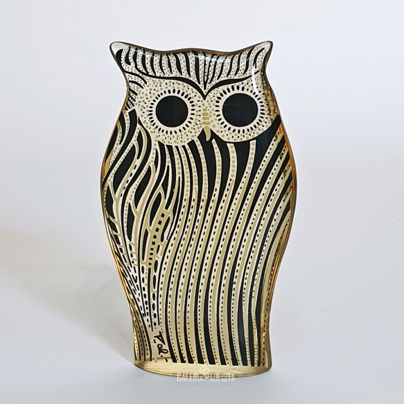 PALATNIK "CORUJA" Escultura-Arte Cinética -Med: 11 x 7 cm -Assinada "Pal" -Escultura produzida em resina de poliéster com filme colorido "preto e amarelo" na sua parte interna. Excelente estado de conservação, sem lascados ou bicados. Manufatura: Abraham Palatnik.
