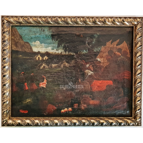 ESCOLA EUROPÉIA "S/ Título" Óleo Sobre Tela - Medidas: 35x20 cm -c. Séc XVIII -Autor desconhecido -Pequeno restauro antigo na parte superior direita -Com moldura em madeira.