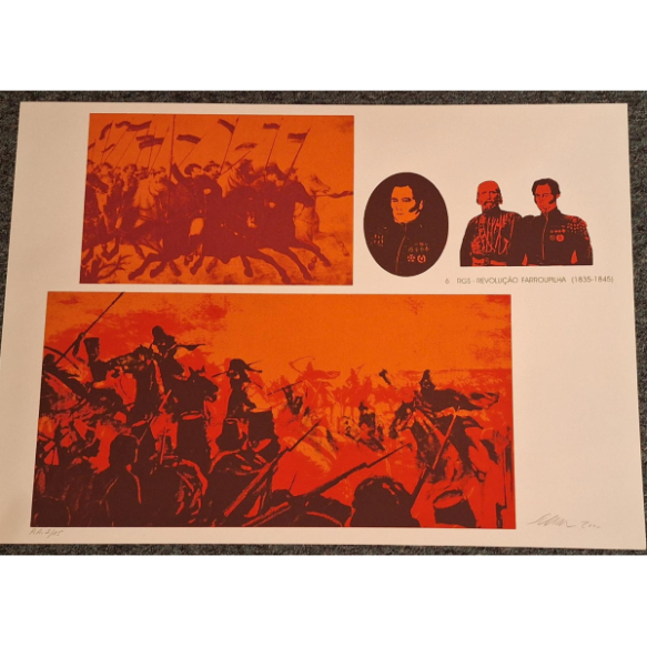 Carlos Scliar - RGS - Revolução Farroupilha (1835 - 1845). 51 x 71cm. Raras Serigrafias (em papel especial, em estado de conservação excepcional) Que contam histórias do Brasil através da arte de Carlos Scliar.upilha