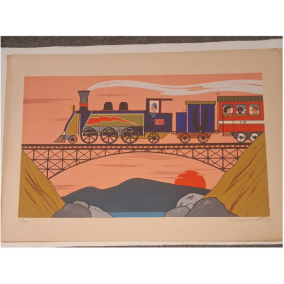 Roberto Magalhães – Ass. Inf, direito e dat, 1970. 51×76 cm, 12/100. Após sua primeira exposição de gravuras na Petite galerie RJ, recebeu o prêmio da quarta Bienal de Paris e 1967 o prêmio de viagem aí exterior no 15° salão de arte moderna com uma de suas Xilogravuras, em 1992 o centro cultural BB, realizou retrospectiva de sua obra.