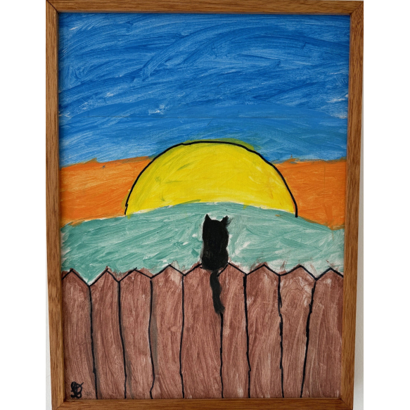Lívia de Almeida Rodrigues - A Vista do Pôr do Sol - 2025 - Caneta Permanente e Guache sobre Tela - 40 x 30 cm - Ass. CIE - Emoldurada - Obra Individual - Aluna da ETH.