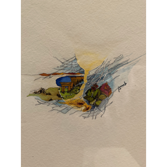 Sérgio Lerman - Sem Título - 1985 - Bico de Pena e Hidrocor sobre Papel - 50 x 70 cm - Ass. CD - Emoldurado - Doação das Filhas de Sima e Noel Charnizon (z'l), ex- presidente da ETH, em sua memória e homenagem