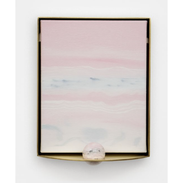 Janet Vollebregt - Paisagem em calcita mangano II, da série Ming Tang - 2024 - Óleo sobre tela, latão e mangano calcita - 31,5 x 25,8 x 12 cm.