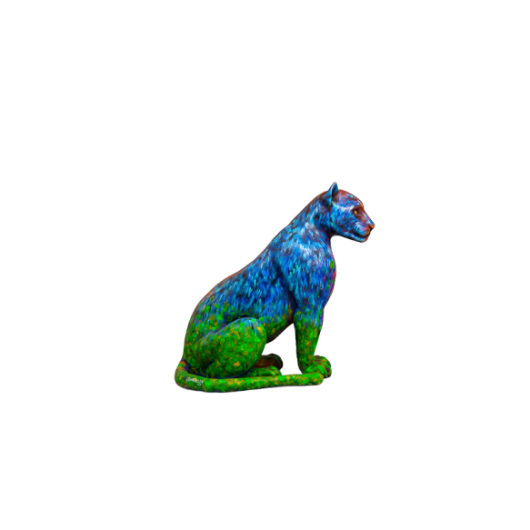 Inspiração do projeto: “Este projeto artístico nasce da conexão profunda com a fauna e a flora da Amazônia e do Brasil, trazendo o Jaguar como símbolo de força, mistério e equilíbrio na natureza. Inspirado nas cores vibrantes do nosso território, a obra explora o vermelho, representando a energia e a resistência da floresta; o azul, que reflete os rios e a imensidão do céu; o amarelo, que carrega o calor do sol e a vitalidade da vida; e o verde, essência da mata, símbolo da renovação e da biodiversidade. Cada pincelada resgata fragmentos da nossa fauna – das araras aos jacarés, das vitórias-régias aos gaviões – criando uma composição que transcende a imagem e se torna um chamado à preservação. Este trabalho é uma homenagem à riqueza natural da Amazônia e um convite à reflexão sobre a importância de proteger nossas raízes e nosso ecossistema.”