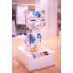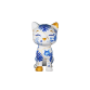 Inspiração do projeto: Inspiração: Kintsugi (arte japonesa de reparar com ouro). • Visual: A escultura do gato é concebida como uma grande peça de porcelana branca e azul, com delicadas “rachaduras” douradas, como se tivesse sido restaurada com amor. • Mensagem: As marcas do passado são parte da beleza de quem foi resgatado. • Elementos: Toda a composição é desenvolvida em tons de azul, com traços manuais que remetem às tradicionais porcelanas. Entre os elementos decorativos, há gatos em diversas posições, cheios de personalidade, leveza e humor. Muitos deles inspirados nos animais resgatados pela própria artista ao longo dos anos. As plantas destacadas são todas espécies nativas brasileiras, como a maranta-bigode-de-gato, a begônia maculata, a helicônia-papagaio, o guaimbê e a bromélia, conectando a obra à natureza local e reforçando sua originalidade.