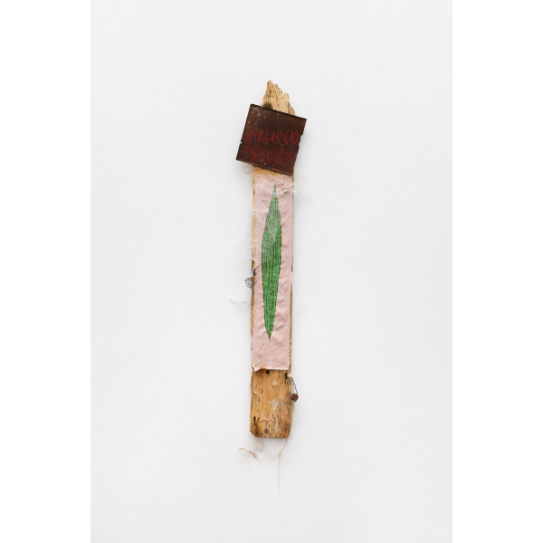Xilogravura, tecido e bordado sobre suporte precário153 x 30 x 8 cmAssinado