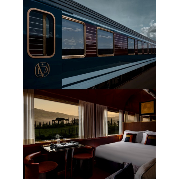 Viagem para o casal de 2 noites a bordo do novíssimo trem La Dolce Vita da Orient Express, combinada com 2 noites no hotel La Minerva Orient Express em Roma, mais 2 noites no The Carlton, Milan (Rocco Forte Hotels).
