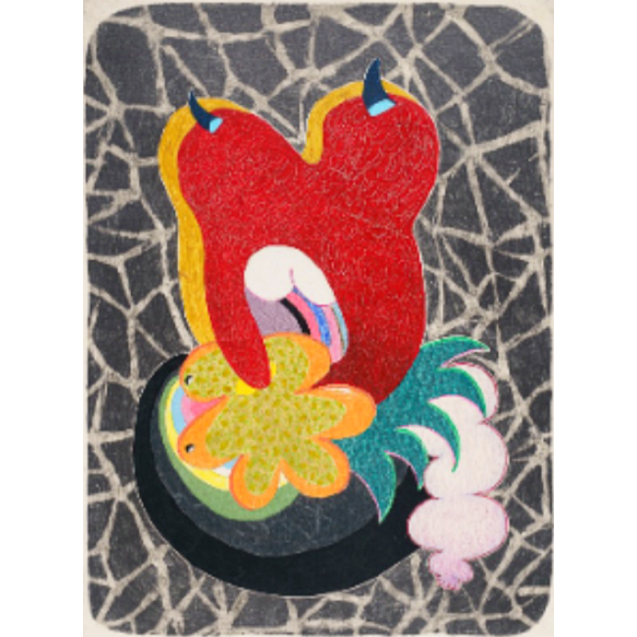 Thiago Barbalho - Tiktok Dance - 2024 - Tinta óleo, caneta esferográfica, lápis de cor, gel espessante, resina acrílica, marcador permanente e grafite sobre tela - 40,3 x 30 x 3 cm.