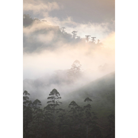 A obra é parte de uma série de fotos sobre São Franscisco Xavier, suas montanhas e cachoeiras. Na incansável busca pela luz perfeita entre as montanhas, neblina e árvores dessa vila tão especial faz parte de uma história de amor entre o fotógrafo e São Chico. (Pedro Montes)
