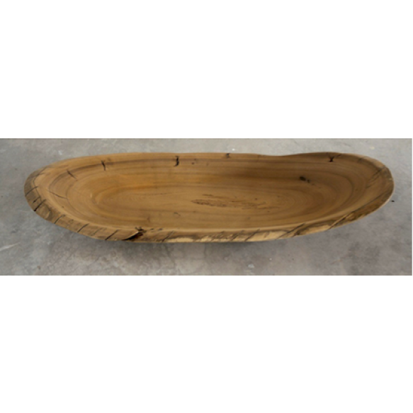 A gamela Mandyba foi produzida a partir de resíduos da árvore pequi-vinagreiro. Esta árvore é procedente da Mata Atlântica, sendo a árvore que vive mais tempo neste bioma. Tenho como principal conceito manter o formato do resíduo encontrado, interferindo o mínimo possível na sua originalidade. Não utilizo pigmentação, portanto, a cor e o tom de suas peças são originais. Assim, a gamela Mandyba não é apenas um objeto utilitário, mas uma escultura funcional que evidencia o diálogo entre arte, natureza e permanência — um testemunho da vitalidade da floresta e da possibilidade de transformar resíduos em presença estética e poética. No meu trabalho a matéria encontrada não é apenas matéria-prima, mas um organismo com história própria. Troncos, raízes e fragmentos que a natureza descartou são acolhidos e transformados com intervenções mínimas, preservando a força expressiva de suas formas originais. Atuo mais como revelador do que como modelador, permitindo que a própria madeira conduza o desenho final da peça. Ao recusar o uso de pigmentos, mantenho intacta a identidade cromática do material. As tonalidades, texturas e marcas do tempo permanecem visíveis, afirmando a autenticidade da madeira e o percurso natural que a moldou. (Hugo França)
