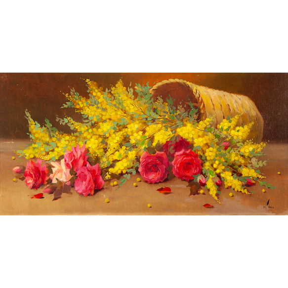 EspañolJosé Lubra Roncoletta, óleo sobre tela, medindo 50cm x 100cm, assinado no canto inferior direito.