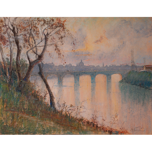 EspañolNicola Fabricatore, Nápolis, Itália, (1889 - 1960), Pastel sobre papel colado em duratex, medindo 50cm x 63cm, assinado no canto inferior direito.