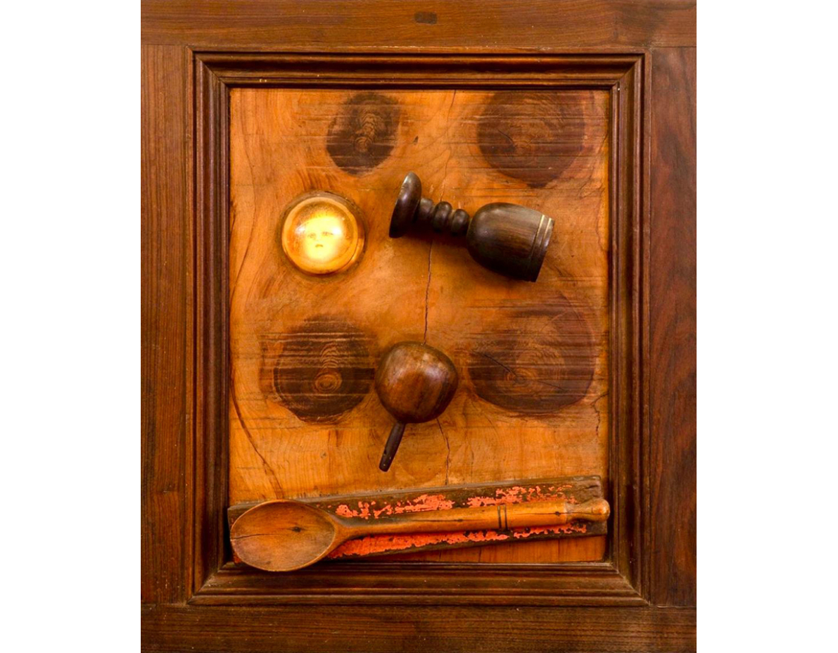 Farnese de Andrade, Homenagem à Carlos Scliar, Assemblage em madeira e resina, 52, Assinatura no verso, Belas Artes.
