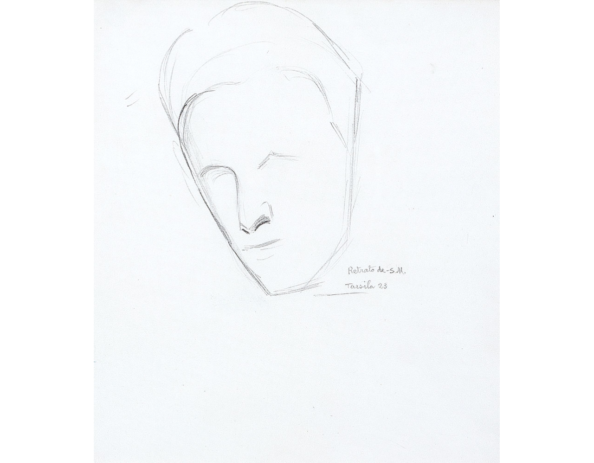 Tarsila do Amaral - Estudo de Retrato Azul (Sérgio Milliet) - Desenho a Grafite -Ass.