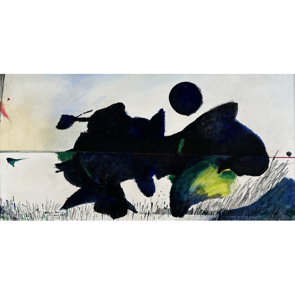 Aldemir Martins - Marinha, 1982 - Acrílica sobre tela, assinado, datado e dedicado inferior esquerdo e no verso. Obra reproduzida nos livros: Aldemir Martins “O Viajante Amigo” Pgs.86e87. Aldemir Martins “Linhas Cor e Forma”Pg.224.50 x 100 cm.