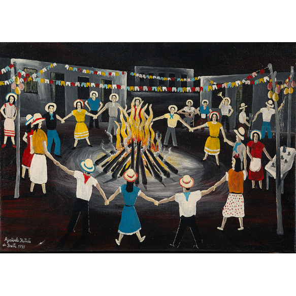 Agostinho Batista de Freitas - “festa de São João” - Óleo Sobre Tela - Ass.dat.inf.esq. - 1971 - 50 x 70 cm.Obra participou e está reproduzida na pág.161 do livro da amostra da retrospectiva do artista no Museu de Arte de São Paulo Masp, Reproduzida pag. 182 do livro Arte Popular Brasileira, Olhares Contemporâneos.
