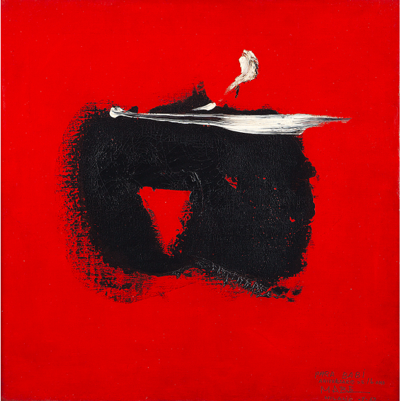 Manabu Mabe - “Sem título” - Óleo Sobre Tela - Ass,dat. loc. Milão e com dedicatória Babi aniversario 16 anos - 1962 - 45 x 45 cm.Reproduzido no livro Um Acervo de Histórias por Jaime Vargas.