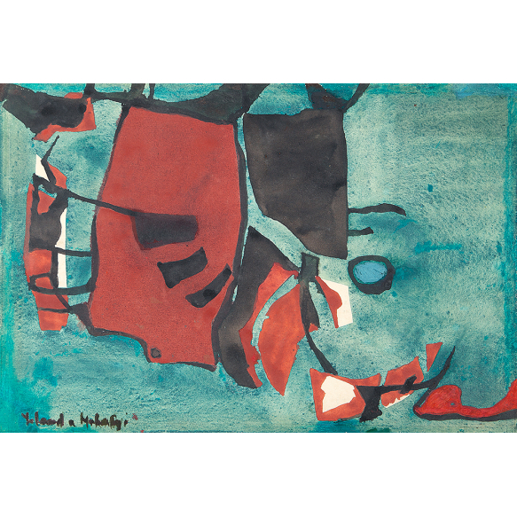 Yolanda Mohalyi - “Sem título” - Técnica Mista Sobre Cartão - Ass.inf.esq. - 32 x 47 cm.Estudo para serigrafia do início dos anos 1970. Aquarela sobre papel cartão, assinado no canto inferior esquerdo. Dimensões: 40 x 55 cm (com moldura); 32 x 47 cm (obra). Imagem extra de um exemplar da edição de serigrafia feita a partir deste original.