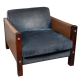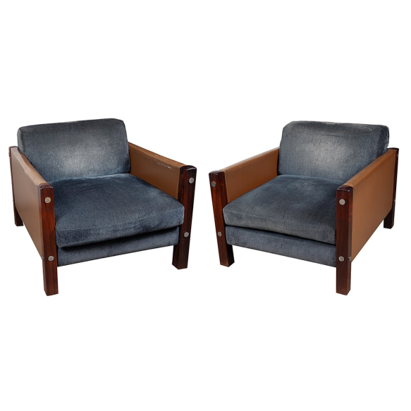 Sergio Rodrigues - “Par de poltronas Millôr em Jacarandá maciço , almofadas soltas em tecido, laterais revestidas em couro e botões originais em metal cromado.” 1965 - 70 x 84 x 93 cm.Reproduzida na pág.268 do livro Sergio Rodrigues - designer Icatu.