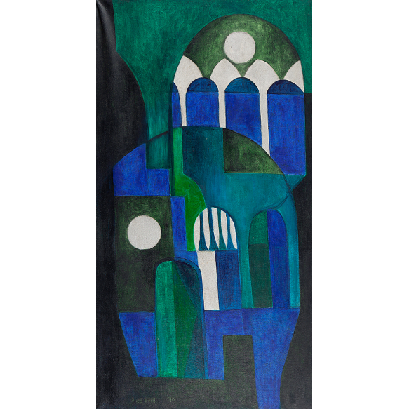 ALICE BRILL - Templo Azul - Acrílico Sobre Tela - Ass.dat.1970 inf.esq - 121 x 64,5 cm.Reproduzido na pág .85 e com etiqueta da Retrospectiva Alice Brill - Alicerceres da Forma realizado no Museu de Arte Brasileira- FAAP - 02/07 a 15/07/2007.