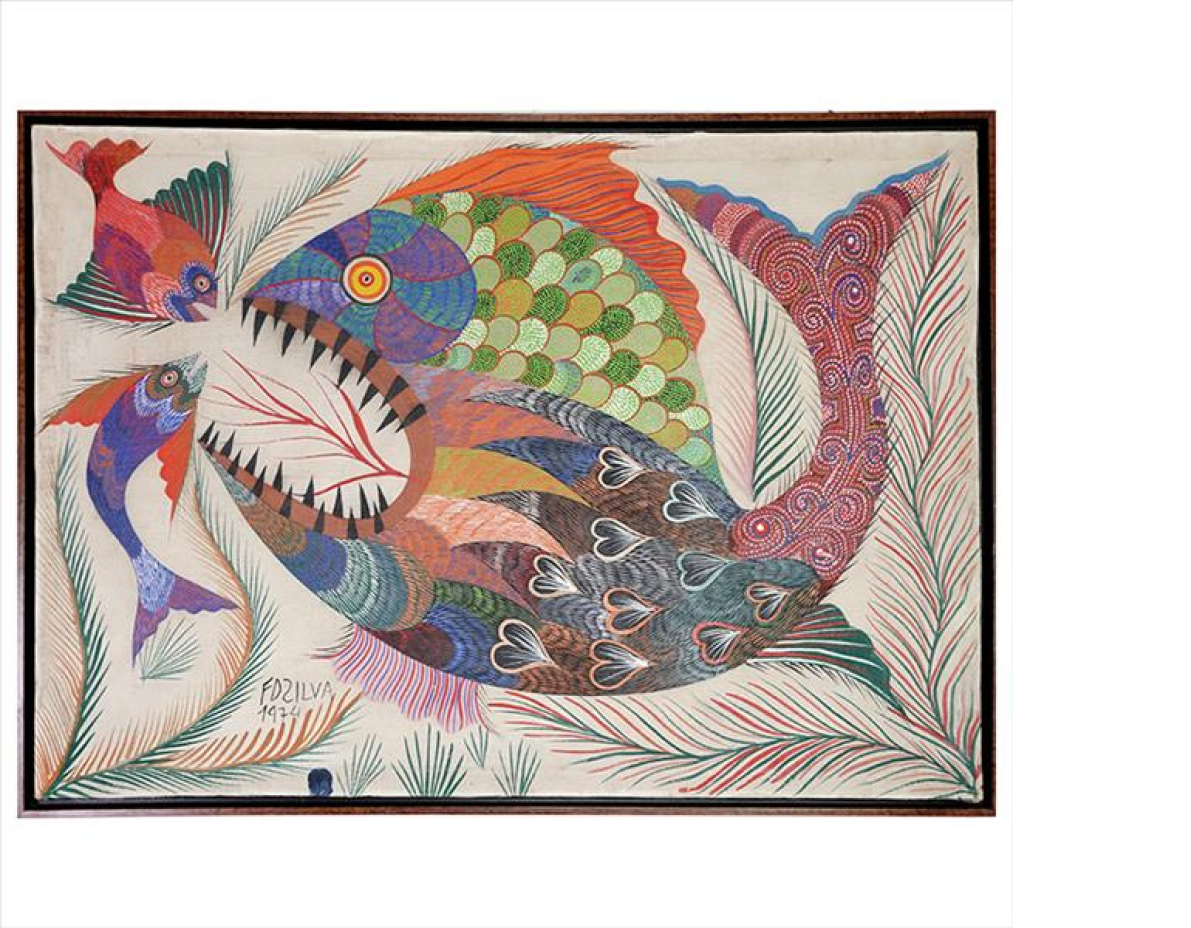 CHICO DA SILVA, Peixes, Guache sobre Tela, ACID, 53 x 73cm (m.
