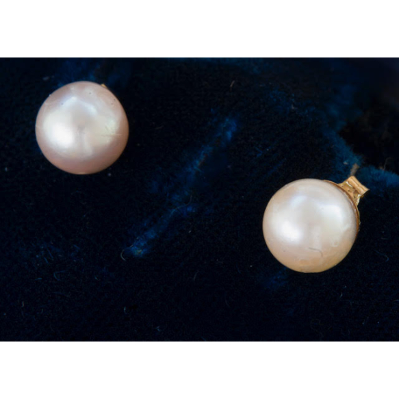 PAR DE BRINCOS EM OURO AMARELO 18K COM PÉROLAS DE 8,6MM.PESO 2,8 GRAMAS.