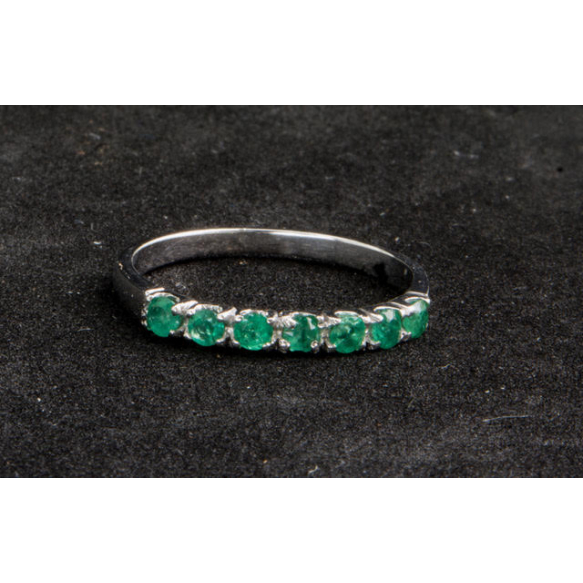 MEIA ALIANÇA EM OURO BRANCO 14K COM SETE ESMERALDAS.PESO 2,3 GRAMAS ARO 23,5.