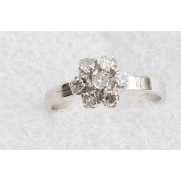 ANEL EM OURO 18K,PLATINA COM SETE BRILHANTES 8X8 DE APROX 0,49 PONTOS TOTAL.PESO 2,8 GRAMAS ARO 17,5.BASE MEDE 0,8CM DE DIÂMETRO.