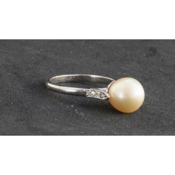 ANEL EM PLATINA COM PÉROLA DE 8,2MM E QUATRO BRILHANTES 8X8.PESO 3,3 GRAMAS ARO 14.