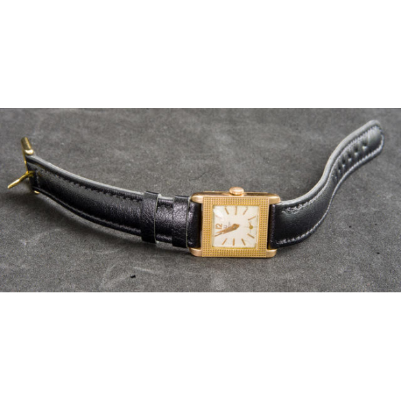 RELÓGIO UNIVERSAL GENÉVE EM OURO 18K,NÚMEROS ATRÁS 188808-1 e 1802169.CAIXA MEDE 21MM X 21MM.MECÂNICO. FUNCIONANDO. PULSEIRA PRETA EM COURO. POSSUI UM CONTRASTE. PESO BRUTO 22.9 GRAMAS.