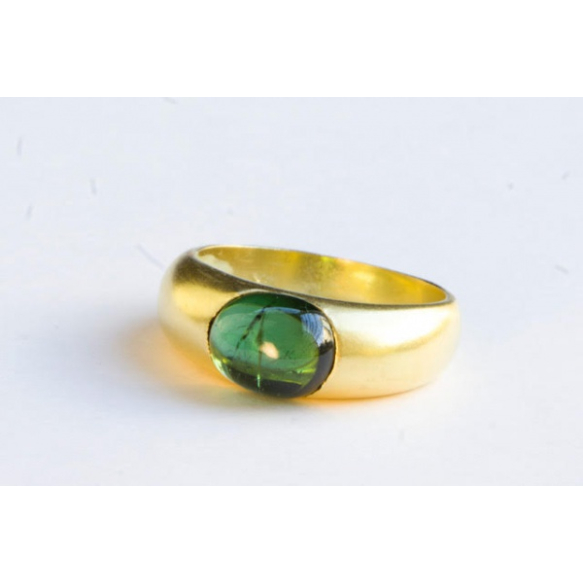 ANEL EM OURO AMARELO 18K COM CABOCHON DE TURMALINA.PESO 4,7 GRAMAS ARO 18.
