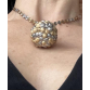 JÓIA ÚNICA NO SEU GÊNERO REPRESENTANDO UMA GRANDE E PESADA NOZ.COLAR E PINGENTE EM OURO AMARELO,BRANCO E ROSÊ 18K CONTRASTADO COM TRINTA E UM BRILHANTES 8X8 DE APROX 0,30 PONTOS TOTAL.PESO TOTAL 64 GRAMAS.COLAR MEDINDO 39CM ABERTO E O PINGENTE APROX 3,2CM DE DIÂMETRO X 4,5CM DE COMPRIMENTO.Assista ao vídeo.