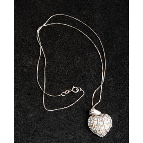 COLAR ITALIANO COM PINGENTE CORAÇÃO EM OURO BRANCO 18K CONTRASTADO COM 15 PEDRAS BRANCAS.PESO 5,1 GRAMAS.COLAR MEDINDO 40,5CM ABERTO E O PINGENTE 2,3 X 1,5CM.Assista ao vídeo.