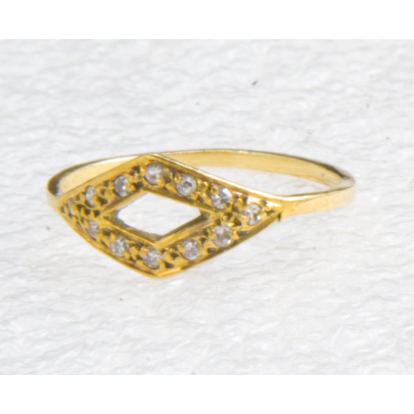 ANEL EM OURO AMARELO 18K CONTRASTADO + OUTRO CONTRASTE E DOZE BRILHANTES 8X8 DE APROX 0,15 PONTOS TOTAL.PESO 1,4 GRAMAS ARO 13,5.