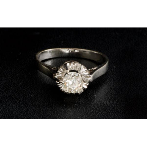 ANEL SOLITÁRIO EM PALÁDIO COM DIAMANTE CUSHION CUT DE APROX 0,60 PONTOS COR " J" PUREZA "SI2".PESO 2,3 GRAMAS ARO 10,5( DEZ E MEIO ).Assista ao vídeo,